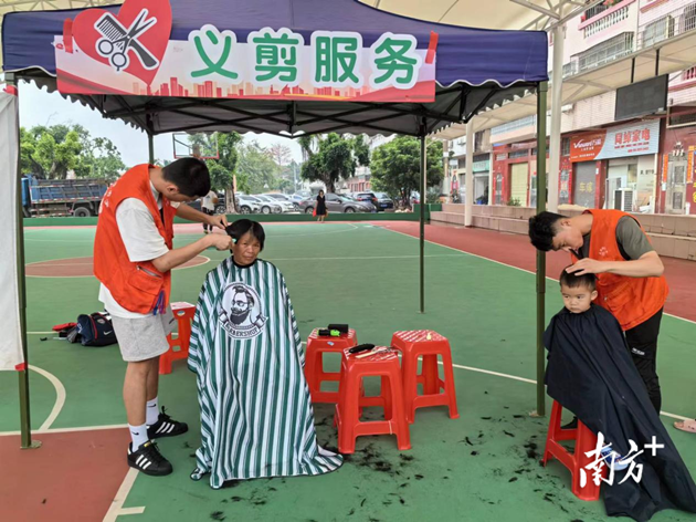 虽然现场剪发的工具比较简单,但学子们的服务仍获得了社区居民的信任。当了解到义剪志愿者主要是新疆少数民族学生、退役复学学生以及学生干部后,阿姨们更是竖起了大拇指为他们点赞。