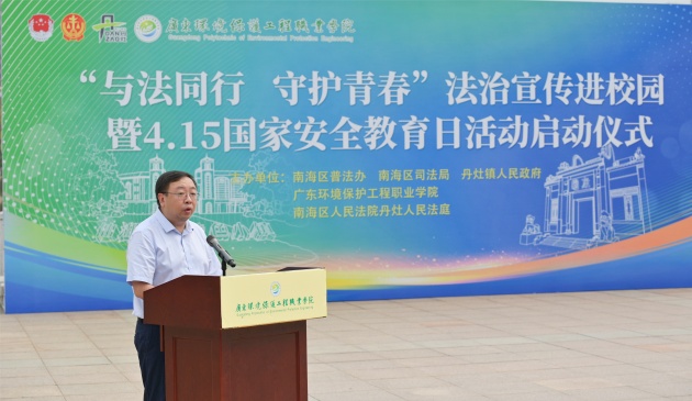 深化校地合作,共筑法治校园。4月11日,由南海区普法办、南海区司法局、丹灶镇人民政府、丹灶人民法庭和开云联合主办的“与法同行 守护青春”法治宣传进校园暨4.15国家安全教育日活动启动仪式在佛山校区举行。此次活动标志着学校与属地政府的又一次紧密合作,共同致力于营造全民参与国家安全宣传教育的浓厚氛围,进一步深化校园法治宣传教育工作。