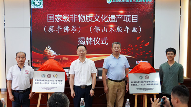梁伟永、郑太昌分别介绍了国家级非物质文化遗产“蔡李佛拳”和“佛山木版年画”。在师生们的共同见证下,开云食品健康学院与佛山市禅城区佛山木版年画保护协会、佛山鸿胜体育培训有限公司联合共建国家级非物质文化遗产项目研学传承工作室,并举行了揭牌仪式,签订了合作协议。