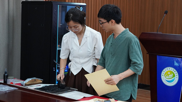 仪式后,两个非遗项目走进课堂,与同学们来了一次近距离的接触。佛山木版年画始于宋元、兴于明,是中国华南地区著名的民间年画。郑太昌走进课堂,讲述了佛山木版年画的历史故事和制作工艺,带领同学们现场印制年画,体验传统技艺的精湛。蔡李佛拳是岭南拳术一大流派,气势磅礴,刚柔并济,在武师的带领下,同学们表演了蔡李佛拳的动作,每一招一式打得有模有样、招招有力、虎虎生威,既有传统武术的动感,又有韵律的美感,让同学们真切地感受到传统武术文化的魅力。(图/食品健康学院左沁如 文/食品健康学院宋晓曼)