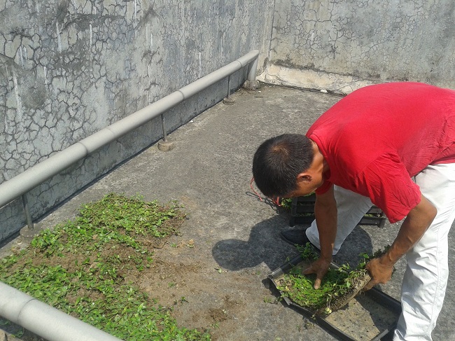 2013年8月28日,我院生态环境系与东莞市绿屋环保工程有限公司合作的屋顶绿化示范工程建成,成为我院继与清华大学合作的人工湿地之后的又一“节能低碳示范工程”。当天,新华通讯社广东分社记者来到现场进行了拍摄和采访。