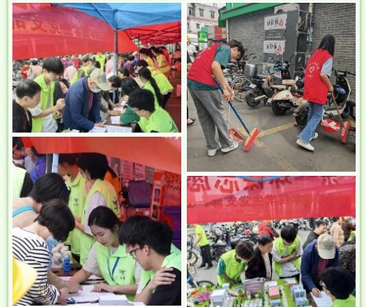 环境工程学院组织到桂城叠北社区,进行问卷调研、垃圾分类、清扫街道、开展环保模型展等环保志愿活动,向社区群众开展环保科普。