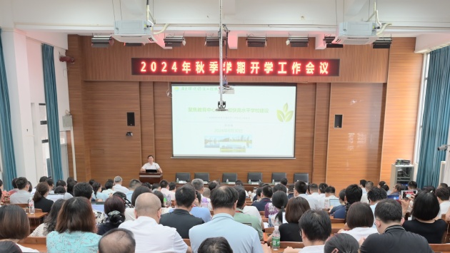 党委副书记、校长孙水裕对假期坚守岗位的教职工表示诚挚的感谢。他以“聚焦教育中心地位 加快高水平学校建设”为题作工作报告,全面回顾了春季学期主要工作亮点,统筹部署秋季学期重点工作,并就2022-2023 学年高等职业学校主要负责同志教学述职评议结果作了深刻剖析。他强调,秋季学期,学校要以习近平新时代中国特色社会主义思想为指导,贯彻党的二十大和二十届三中全会精神,进一步全面深化教育综合改革,聚焦省域高水平高职院校建设,在人才培养、师资、科研、保障等关键环节改革攻坚,以教学为中心,推动教育数字化转型,立足生态环境特色优势,深化产教融合、科教融汇,为美丽中国和绿美广东生态建设作出新的更大贡献。(文/党政办公室 李芩芩 图/学校新媒体中心)