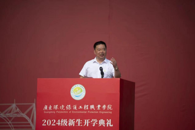校长孙水裕发表题为《挺膺担当逐梦前行》的讲话,代表学校和全体教职工向2024级全体新生的到来表示衷心的祝贺和热烈的欢迎。在致辞中,孙水裕详细地介绍了学校的各类硬核实力,突破成就,实现了历史性跨越式发展。他对新生提出三点期望:一是志存高远,挺膺时代担当,在推进社会主义现代化强国建设、民族复兴伟业中挺膺担当,争做生态环境事业的生力军、突击队、主攻手,为美丽中国贡献青春力量;二是勤勉笃行,练就过硬本领,珍惜宝贵时光,做好学习规划,提升理论素养、厚实专业功底,为将来的发展打好桩、筑好基,努力成为勤奋拼搏、超越自我的“显眼包”;三是修身养德,培育健康人格,通过阅读来陶冶情操,通过运动来强身健体,通过艺术来愉悦精神,成为一个身心健康、精神丰富、志趣高雅、道德高尚的人,在强国建设、民族复兴伟业中争当先锋者,勇当排头兵,奋力谱写崭新篇章。