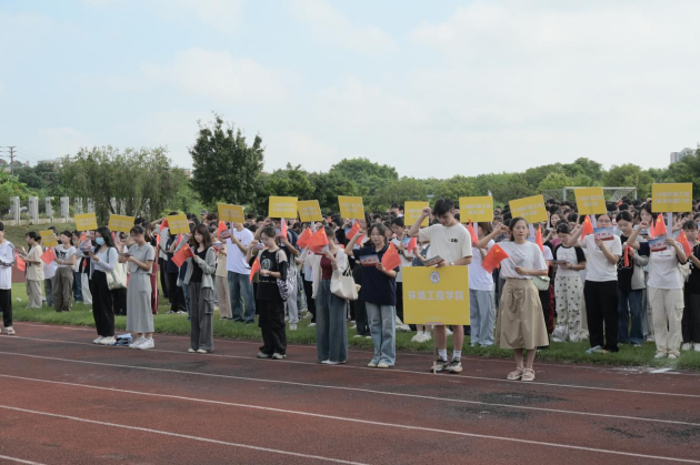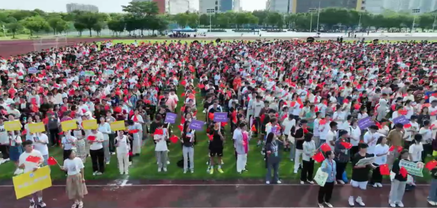 典礼最后,伴随着《灯火里的中国》《海阔天空》歌曲激昂的旋律,现场师生共同合唱,典礼的气氛达到高潮。