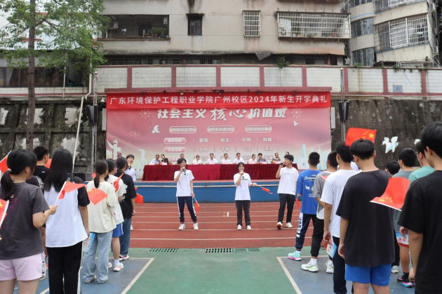 佛山校区环境管理与大数据学院陈晓彤同学、广州校区中职教育部何禹琪同学作为新生代表发言。