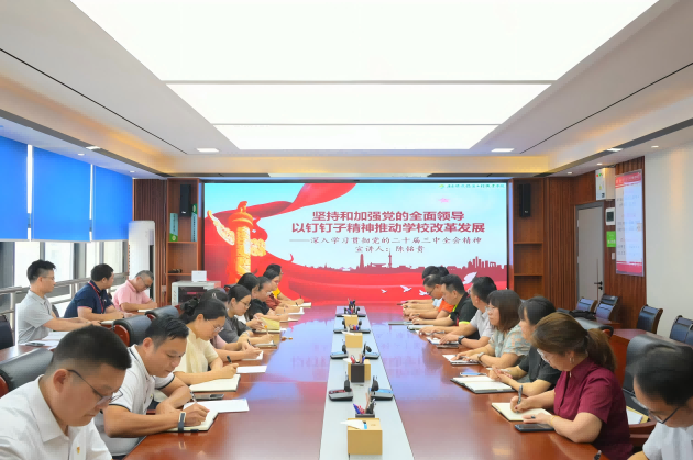 为深入学习贯彻党的二十届三中全会精神,10月17日下午,学校党委书记陈铭贵为分管和联系的部门作党的二十届三中全会精神的专题宣讲。党政办公室党支部、先进制造学院党总支的党员干部聆听了报告。