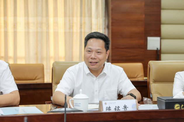 陈铭贵对广东海洋大学的热情接待表示感谢。他介绍了学校的基本情况、办学历程及近几年来取得的重要成果,并着重介绍了学校在生态环境领域的办学特色。他指出,希望双方以此次交流为契机,探索在水产养殖尾水处理等更多领域的合作,共谋发展。