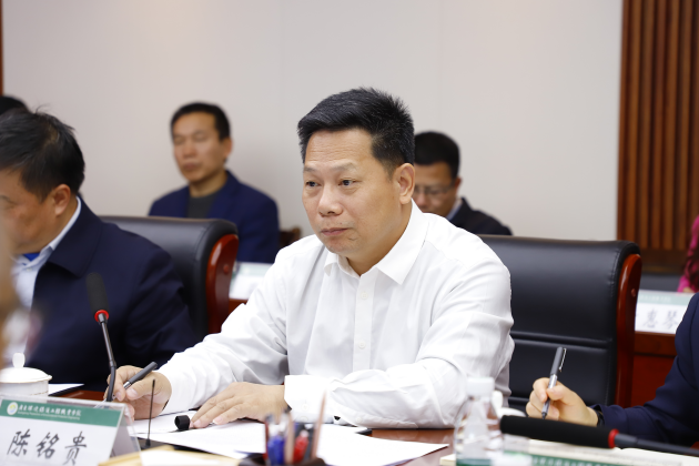 陈铭贵对河北环境工程学院、长沙环境保护职业技术学院一行的到来表示热烈欢迎,对两校一直以来的支持和帮助表示感谢。他指出,三所院校同为生态环境教育兄弟院校,血脉相连、友谊深厚,希望今后进一步紧密联系、资源共享、优势互补,共谋发展,共同为生态环境事业和区域经济发展提供人才和智力支撑。