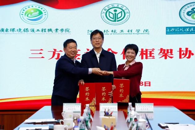 黄凤莲回顾了三校前期的交流合作情况,分享了长沙环境保护职业技术学院近年来的办学成效与经验。她表示,三校都是国家生态环境保护事业的先行者,始终致力于生态环保高素质人才培养,同根同源、同向同行,希望未来三校能够更加同心同德,携手并进,在更高层次、更广领域上形成共识、协同行动,共担美丽中国建设的光荣使命责任,共同书写生态环保教育的辉煌篇章。