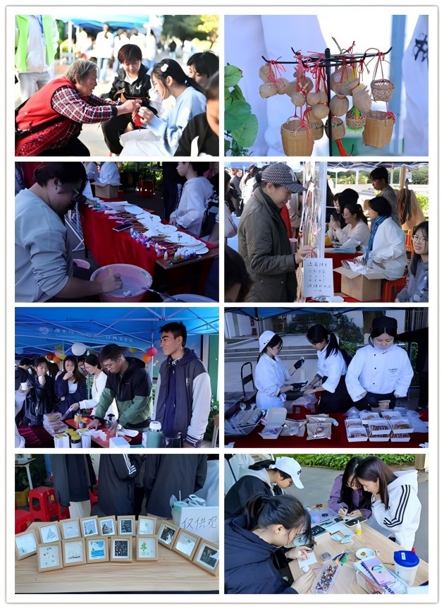 随后校领导与师生们一起参观和体验科技展、文创集市活动。