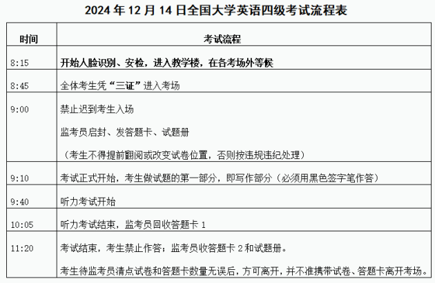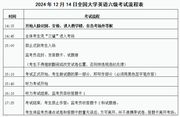 一、考试流程表