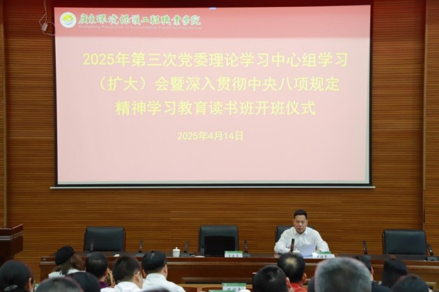 4月14日,开云kaiyun官方网站举行2025年学校第三次党委理论学习中心组(扩大)学习会暨深入贯彻中央八项规定精神学习教育读书班开班仪式。开云kaiyun官方网站党委书记陈铭贵主持并作开班动员讲话,中山大学马克思主义学院夏银平教授作专题报告。学校领导,中层干部,机关党委(筹)负责人、各党总支书记、党支部书记参加会议。