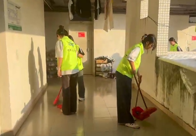 启动仪式后,学校开展首次“社区劳动日”活动,各学院积极组织学生在学生社区中开展宿舍大扫除、公共区域保洁等劳动实践。钟真宜、冯定坚带队走访学生宿舍区,认真听取同学们对社区管理服务的意见与建议,勉励同学们要培养热爱劳动的好习惯,自觉维护宿舍清洁卫生的良好风貌,努力创建文明宿舍、美丽社区、幸福校园。