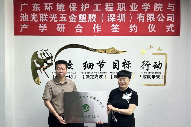 随后,调研组来到池光联光五金塑胶(深圳)有限公司。兰青一行参观了公司的展厅和生产车间。座谈会上,校企双方在人才培养、实习就业、技术服务等方面达成了合作意向并签署了战略合作协议,进行了产学研合作基地授牌。