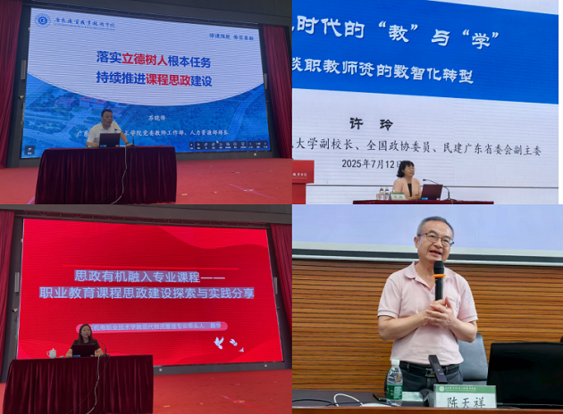 广东技术师范大学杨舰教授作题为“职教教师的教科研能力”的专题讲座,分享了职业教育的先进教学理念和优秀的教学范例,提出未来职业教育的研究方向和重点。广州职业技术大学汤双霞副教授分享了“AI+Deepseek赋能教学创新”的课程内容,在数字化转型方面提供了优秀范例和实施思路。广东橙为教育科技有限公司易伟鹏以“DeepSeek 助力高校行政办公效率提升”为题,系统讲解AI技术对高校行政办公效率提升的全新视野和具体操作。