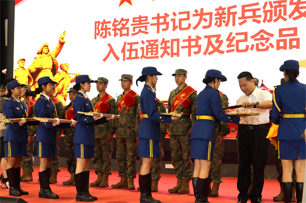 欢送会宣读了校园地14名入伍新兵名单,通报了学校2025年下半年征兵工作情况,家长代表为新兵佩戴光荣花,陈铭贵为新兵颁发入伍通知书、纪念品。