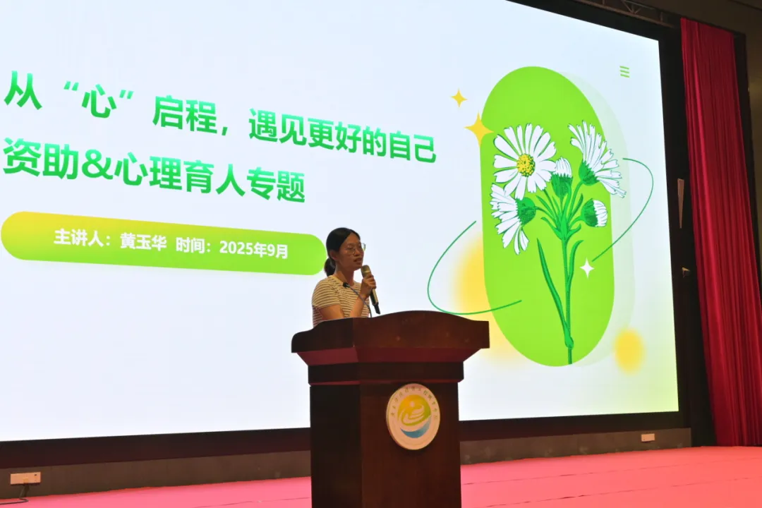 随后,辅导员黄玉华从“资助育人,心理护航”双维度发力,详细介绍国家与学校的资助政策体系,覆盖奖学金、助学金、助学贷款等内容,切实消除新生的经济顾虑;同时,她全面讲解学校心理咨询中心的服务资源与预约流程,引导新生正确看待心理健康,鼓励大家以积极心态面对大学适应期的挑战,将更多精力投入学业提升与自我发展。
