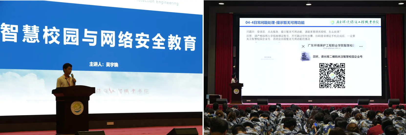 信息化与安全防护是新生适应大学生活的重要保障。吴宇焕老师在“智慧赋能,安全同行”环节中,现场演示智慧校园平台的功能操作,包括课程查询、成绩查询、校园卡服务等实用模块,帮助新生快速掌握数字化校园生活技能;同时,他结合网络诈骗、信息泄露等典型案例,讲解网络安全防护要点,提醒新生提高防范意识,规范网络行为,守护个人信息安全。