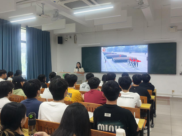 下午2时20分,在教学楼215教室,“形势与政策”课第二讲《纪念抗战胜利 坚定民族信念》正式开讲。主讲教师车晓锋以抗战胜利80周年为切入点,通过“九三阅兵”视频、国内外对比、热播抗战影片及社会热点事件等,引导学生从历史回响中感悟民族精神,在现实对照中强化理性思辨。课程内容扎实、逻辑清晰、互动积极,展现出教师扎实的教学功底与时代视野。课堂氛围庄重而投入,教师倾情讲授,学生潜心思考,校领导与马院教师则全程凝神聆听,不时提笔记录下课堂的精彩瞬间与教学思考。