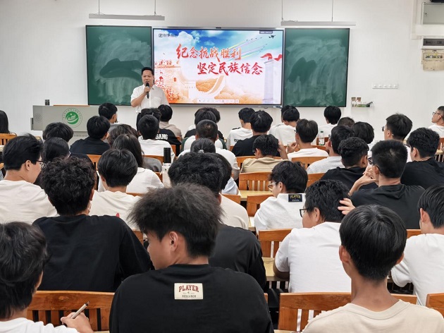 9月29日,学校党委书记陈铭贵以《纪念抗战胜利 坚定民族信念》为主题,为2025级数字化设计与制造1班、2班新生讲授第一堂思政课,通过回顾抗战历史、传承红色基因,引导青年学子在专业学习中厚植家国情怀,将个人理想融入民族复兴伟业。