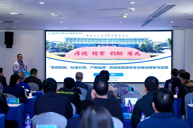 卢东亮副院长以“集群赋能、标准引领、产教融通”为主题,汇报了学校在低碳能源类专业建设的探索与实践。学校紧扣国家“双碳”战略与氢能产业发展需求,聚焦“大储能”,依托粤港澳大湾区氢能产业优势,打造人才培养“新高地”。该专业全国排名领先,与国氢科技、广东清能、康明斯、环华氢能等企业深度合作,构建“校企双元”育人模式,培养具备氢气生产、储存、运输、加注及燃料电池装配检测能力的高技能人才。