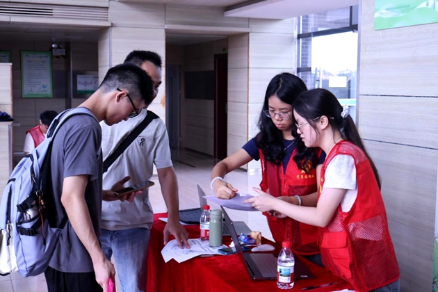 图2迎新工作人员热情服务