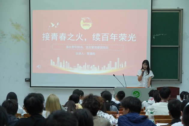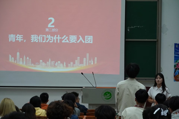 “接青春之火,续百年荣光”主题课邀请了优秀学长学姐分享心得。他们围绕“为什么要入团”“新时代青年的责任”等话题,结合自身经历和感悟,用朴实真挚的语言讲述了他们对团员身份的理解,引发了在场同学的深入思考。