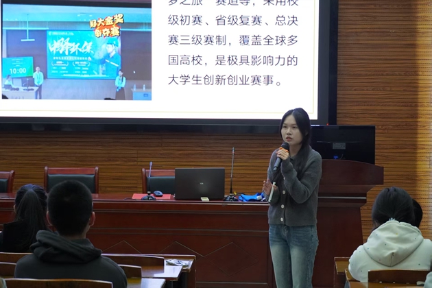 活动伊始,陈宣晓同学带来《竞赛开挂指南·干货速取》分享。她结合自身参赛经历,系统拆解了备赛的核心逻辑,从选题定位、团队分工到作品打磨,通过典型案例总结出一套可复制的竞赛方法论,帮助同学们从“迷茫”走向“清晰”。