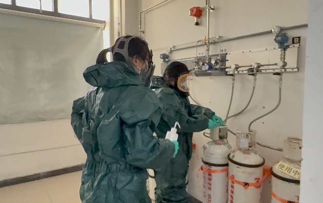 本次演练以“可燃气体泄漏”为模拟场景,随着急促的警报声骤然响起,应急演练正式启动。参演学生在教师的统一指挥下,按照预定疏散方案,沿指定逃生路线快速、有序撤离至安全区域。与此同时,应急处理小组第一时间赶赴现场,按照应急预案开展警戒隔离、泄漏源封堵等关键操作,高效完成应急处置任务。整个演练过程紧张有序,各环节衔接流畅,师生们表现出良好的应急素养和出色的团队协作能力。