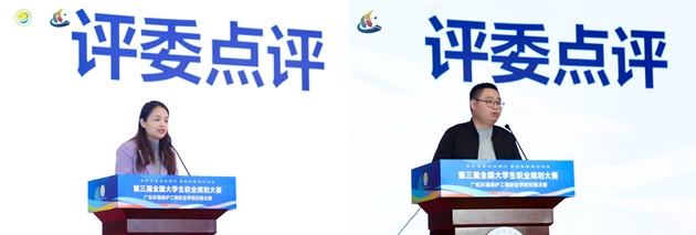 比赛结束后,华南师范大学唐婷芳老师和广东邦普循环科技有限公司人力资源中心主任尹博分别对两个赛道的选手表现进行了专业点评。