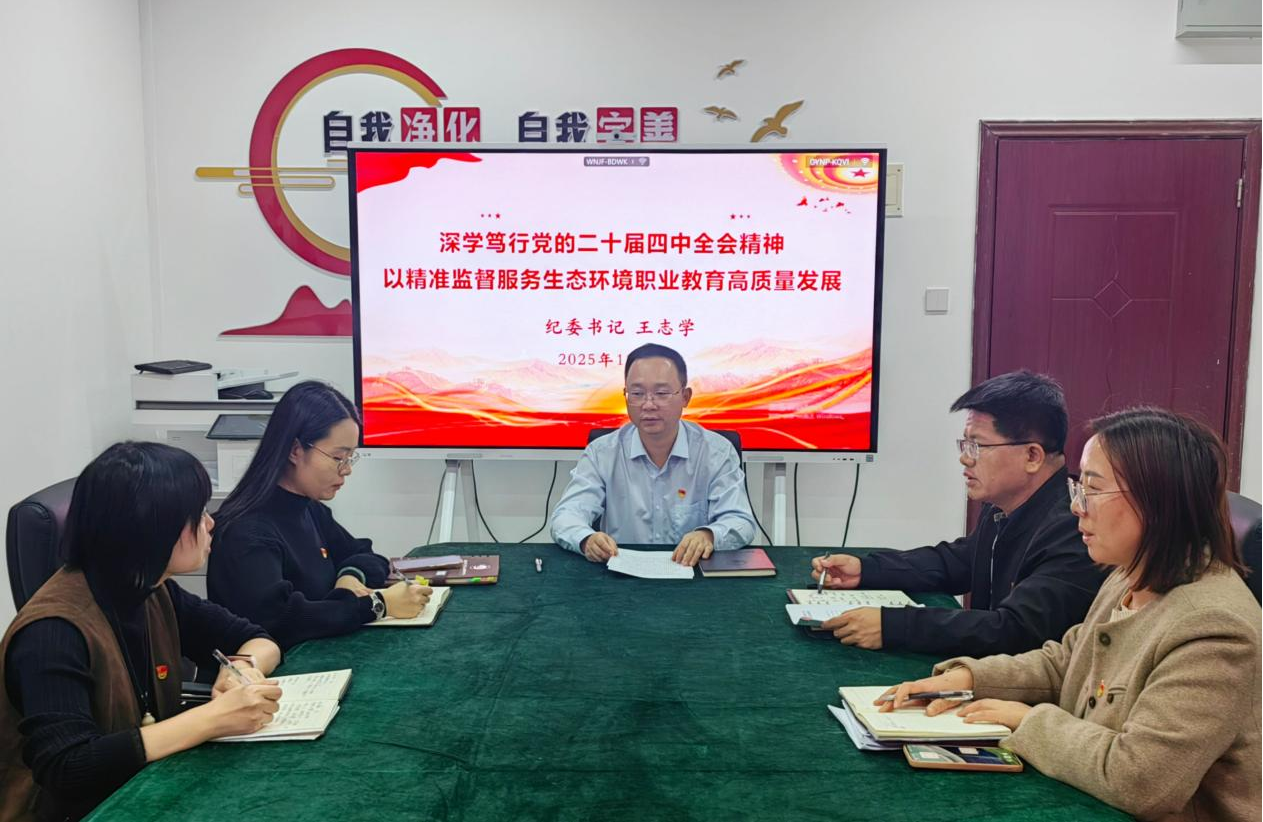 12月9日,学校纪委书记王志学以“深学笃行党的二十届四中全会精神 以精准监督服务生态环境职业教育高质量发展”为题,作党的二十届四中全会精神宣讲。纪检室(审计工作部)全体人员参加会议。
