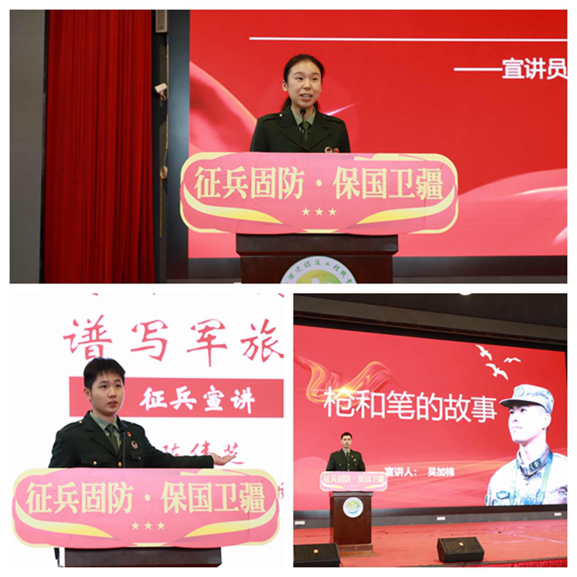 吴加棉、陈伟芝、岳佳雨三位宣讲员分别以《枪和笔的故事》、《以青春之我,谱写军旅之梦》、《镜头背后的故事》为题讲述军旅故事,点燃学子爱军习武热情。学子们纷纷表示,要积极响应祖国召唤,携笔从戎,以青春热血守卫祖国万里河山。