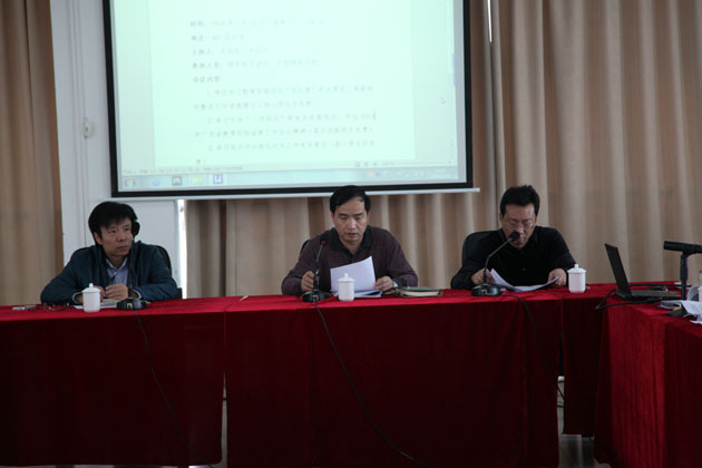 会议首先由游小萍主任传达学习教育实践活动“回头看”有关要求及通报学院整改工作进展情况,并组织学习了省环保厅民主评议政风行风工作的有关事项。奚创旭副院长带领大家学习了中央“八项规定”及省委、省厅、教育系统相关政策规定,并传达2014年广东省教育纪检监察工作会议精神。接着,刘晓冰副院长就今年以来国家、教育部关于建设现代职业教育体系的讲话精神进行了详细解读,并指出学院在当前的高等教育改革中面临的机遇与挑战。最后,思政部张平泉副主任传达了2014年全省高等学校党建工作会议精神。