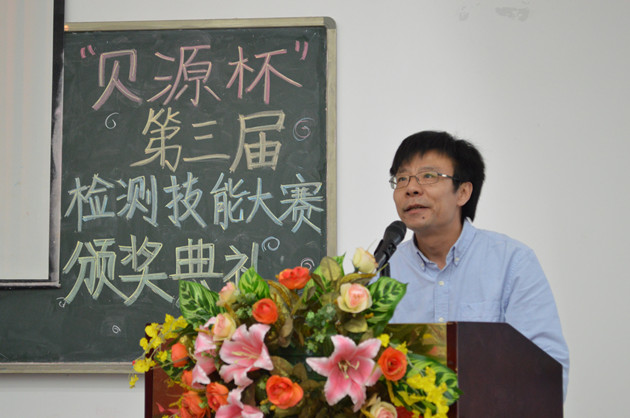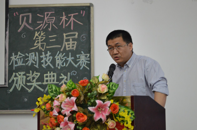 颁奖典礼上,刘晓冰副院长发表讲话,他向在本次大赛中获得佳绩的同学表示热烈祝贺,向贝源检测有限公司的大力支持和组织大赛的老师表示感谢,同时祝愿我院检测大赛越办越好。