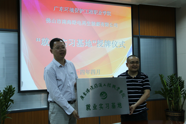2014年4月30日,陈英院长带领循环经济与低碳经济系齐水冰主任、李可副主任等一行到佛山市南海绿电再生能源有限公司调研,并举行就业实习基地挂牌仪式。