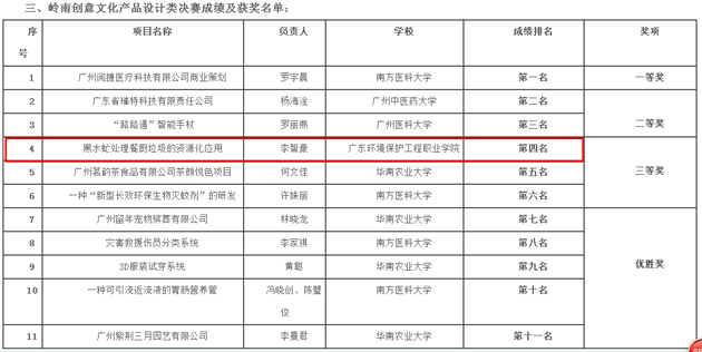 本次广州青年文化创意创业大赛,以创意成就、创业梦想为主题,结合青年对文化产业的挖掘创新,赛程持续半年有余。我院循碳系积极备赛,组建竞赛小组,齐水冰主亲任组长,李连和、李惠萌、冼灿标三位老师担任指导,通过校园文化创意创业设计大赛选拔出上报作品,再经过初赛、复赛的激烈角逐,我院两支队伍在参赛的105支队伍中脱颖而出,成功晋级决赛。4月28日决赛现场,经过创投机构负责人、高校教授、孵化基地负责人、青年企业家及行业协会专家等16人组成的专家评审团评审,我院《黑水虻处理餐厨垃圾的资源化应用》项目获得岭南创意文化产品设计类三等奖,并获得广州青年创业就业孵化基地入孵的支持;《南韵工作室之清吧设计》项目获得空间设计类决赛优胜奖。