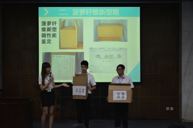 我院非常重视此项竞赛,从去年开始在全院范围内进行了大力宣传,最终选拔出9支参赛队伍。在循环经济与低碳经济系齐水冰主任、李可副主任、李连和、冼灿标、卢东亮等专任老师的耐心指导下,参赛学生积极备赛,同心协力完成作品。最终我院“不再流浪的快递包装”凭借创新理念和显著的节能减排效果,获得一致好评,荣获一等奖;“菠萝节出纸——快递能低碳”获得二等奖;“黑水虻处理餐厨垃圾利用技术”获得三等奖。