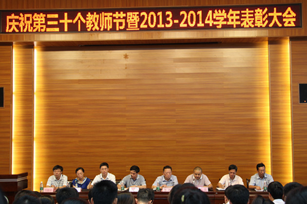 9月10日下午,我院隆重召开庆祝第30个教师节暨2013-2014学年表彰大会。省环保厅副厅长李晖、规财处副处长李国兆、人事处副处长黄晓真、厅办公室副主任刘伟龙、学院党委书记吴洪杰、院长陈英、副院长奚创旭、副院长刘晓冰出席了本次大会。会议由吴洪杰书记主持。