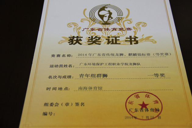 7月23日至25日,“2014年广东省传统龙狮、麒麟锦标赛”在南海体育馆举行,我院“南狮雄风”龙狮队在该项赛事中荣获青年组男子群狮一等奖。