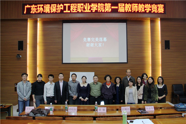 经过2周紧张有序的筹备,系部自行选拔和推荐,共有10位老师参加本次竞赛。竞赛成绩评定采用百分制,由教学设计和课堂教学两部分组成,二者权重分别为20%和80%。竞赛评委除了校内督导室朱必军教授、沈丽达老师外,还邀请了广东省知名教育技术专家、华南师范大学教育技术专业博士生导师、广东省教学名师谢幼如教授、广东省高职化工教职委秘书长、广东轻工职业技术学院胡智华主任、广东省职业技术学院教务处黄敏处长担任。与以往的竞赛相比,参赛教师在短短的2周时间内精心准备参赛课程10个学时的教学设计和与之相对应10个教学节段的PPT,这一设置增加了比赛的难度。
