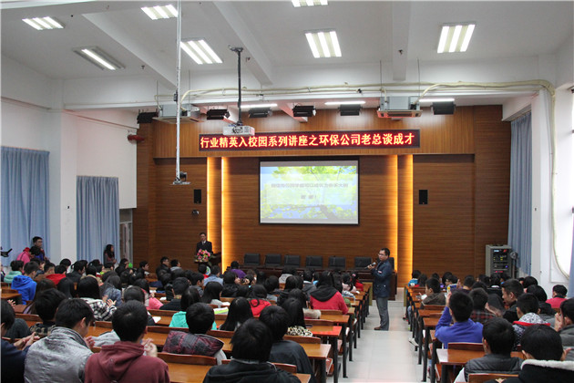 在开班仪式上奚创旭副院长和兰永辉副总裁还为第三届东江冠名班的优秀学生颁发了奖状和奖金。开班仪式结束以后,东江环保股份有限公司兰永辉副总裁还应邀给学生进行了题为《环保公司老总谈成才》的讲座。