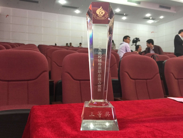 图二 荣获 “广东省第四届高校辅导员职业技能竞赛”三等奖奖杯