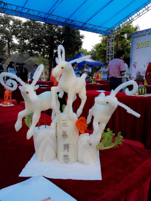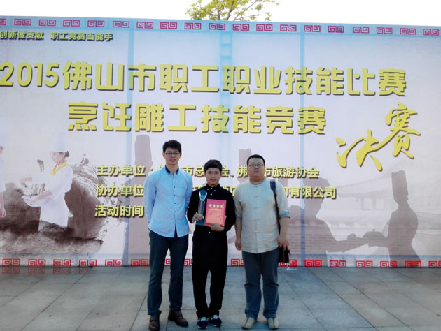 2015年4月26日由佛山市总工会、佛山市旅游协会主办的“佛山市职工劳动竞赛烹饪雕工技能竞赛”在佛山岭南明珠体育馆举行。来自佛山市五区各大酒店的选手参加了此次角逐。我院14级烹饪工艺与营养专业(3班)的陈天乐同学获第一名并荣获“佛山市职工(烹饪雕工技能竞赛)技术状元”荣誉称号,陈剑锋等同学荣获“佛山市职工(烹饪雕工技能竞赛)技术能手”荣誉称号,陈梓惠等同学荣获“佛山市旅游行业服务明星”荣誉称号。