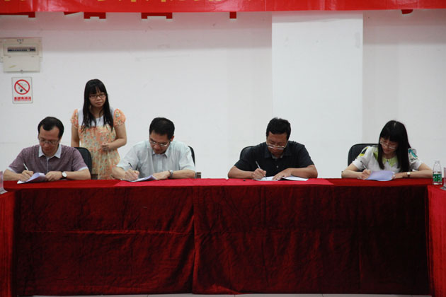 在佛山市建材行业协会孔海发秘书长介绍完项目具体工作实施方案之后,我院奚创旭副书记、佛山市环境监测中心站黎旭明站长助理分别作为合作单位发言,阐述了该标准制定和实施的重要性和必要性。会议上各会员单位还签订了合作协议。