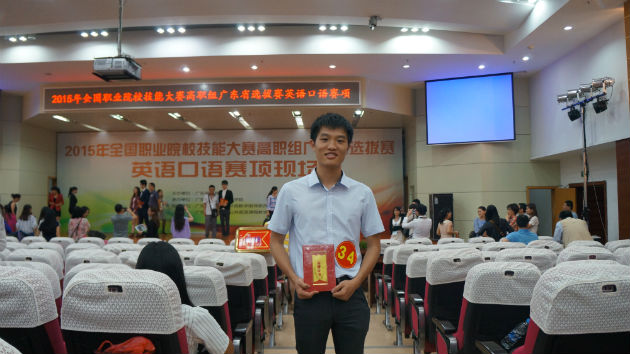 我院14级给排水技术1班何邦丞同学参加了2015年4月25日由广东省教育厅主办、高等教育出版社和广东省高职高专英语教学指导委员会协办、广东交通职业技术学院承办的“2015年广东省高职院校英语口语比赛”公共英语组复赛及决赛,何邦丞同学凭着扎实的英语知识和良好的心理素质,在参赛选手中表现优异,获得了三等奖的好成绩。