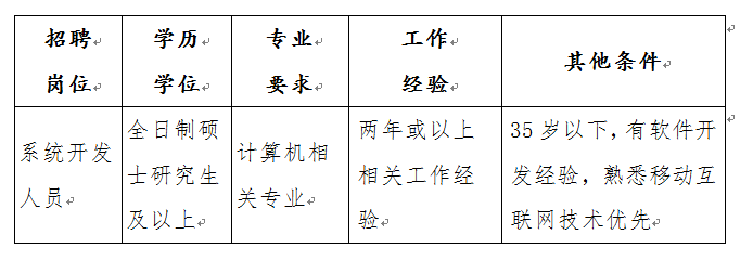 因工作需要,信息中心面向社会招聘专业技术人员1名。