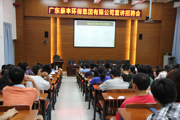 最后,豪丰环保集团进行了宣讲招聘,得到了学生的热情回应,学生积极提交简历,并与公司招聘人员就公司发展情况、个人晋升及职业发展进行了详细交流。