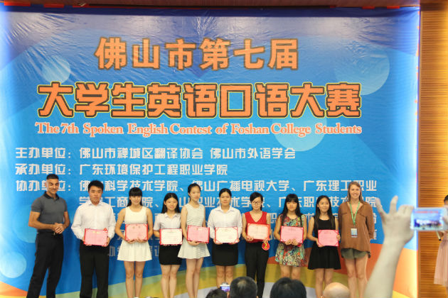 2015年5月29日下午,由佛山市禅城区翻译协会和佛山市外语学会主办、我院承办的佛山市第七届大学生英语口语大赛在教学楼116隆重举行。