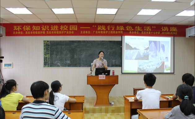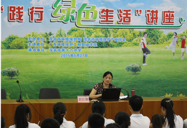 2015年5月25日至27日,在新《环保法》实施后的首个“世界环境日”即将到来之际,应茂名市环保局和茂名市产业协会之邀,我院招生与就业指导办公室彭江颖主任、循环经济与低碳经济系李可副主任一同赴茂名市开展了环保科普教育的校园宣讲活动。
